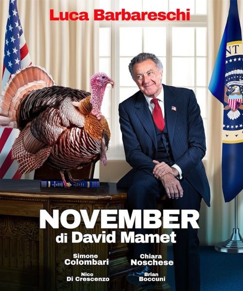 November è una macchina comica perfetta, in due atti, con cambi di ritmo continui e ripartenze spiazzanti, dove ogni battuta è un colpo ben assestato. Protagonisti dello spettacolo sono Luca Barbareschi, Simone Colombari e Chiara Noschese, quest'ultima anche regista. La commedia, scritta da David Mamet, gioca con un umorismo cinico e affilato, tipico dello stile del drammaturgo, che non lascia spazio alla mediocrità.